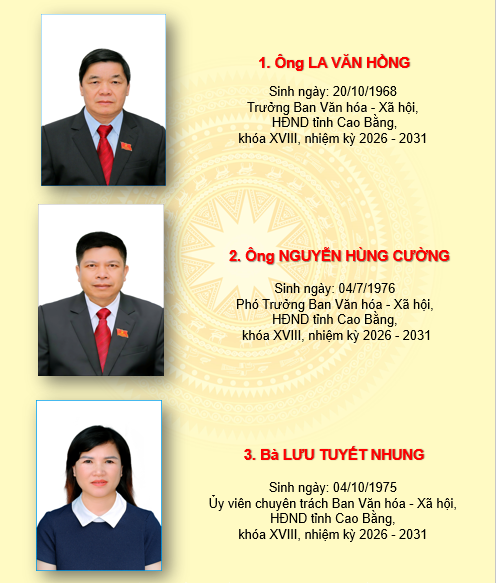 Ban Văn hóa - Xã hội HĐND tỉnh khóa XVIII, nhiệm kỳ 2026 -2031