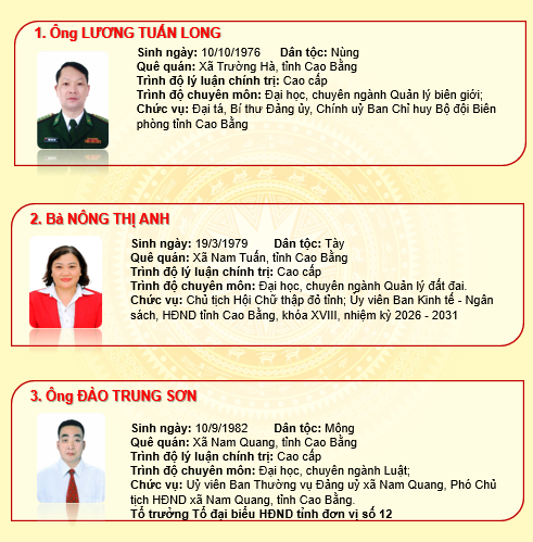 THÔNG TIN ĐẠI BIỂU HĐND TỈNH KHÓA XVIII, NHIỆM KỲ 2026-2031