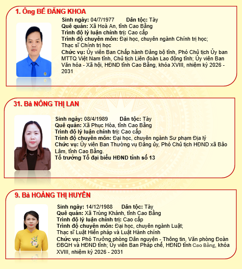 THÔNG TIN ĐẠI BIỂU HĐND TỈNH KHÓA XVIII, NHIỆM KỲ 2026-2031