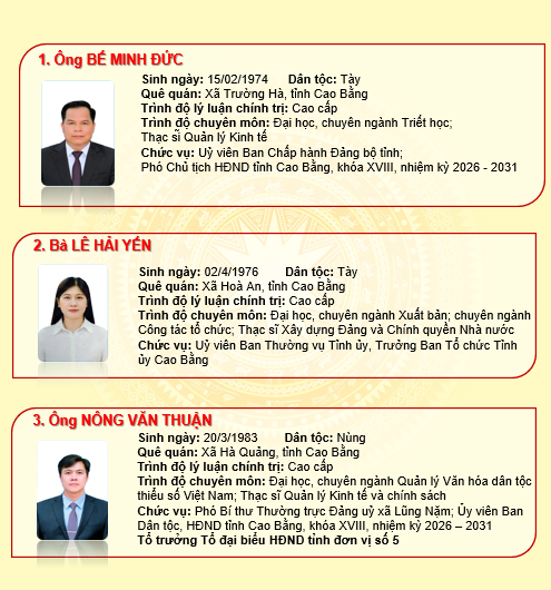 THÔNG TIN ĐẠI BIỂU HĐND TỈNH KHÓA XVIII, NHIỆM KỲ 2026-2031