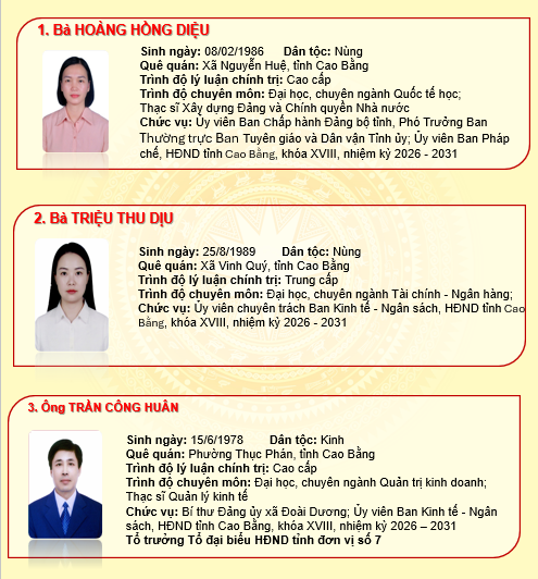 THÔNG TIN ĐẠI BIỂU HĐND TỈNH KHÓA XVIII, NHIỆM KỲ 2026-2031