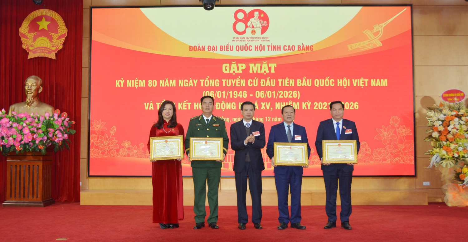 Trao Bằng khen của Chủ tịch UBND tỉnh cho 2 tập thể, 13 cá nhân có thành tích xuất sắc nhân dịp tổng kết hoạt động của Đoàn đại biểu Quốc hội tỉnh Cao Bằng khoá XV, nhiệm kỳ 2021 – 2026 và 7 tập thể, 6 cá nhân có thành tích xuất sắc trong thực hiện phong trào thi đua chào mừng “Kỷ niệm 80 năm Ngày Tổng tuyển cử đầu tiên bầu Quốc hội Việt Nam” (6/1/1946 – 6/1/2026).
