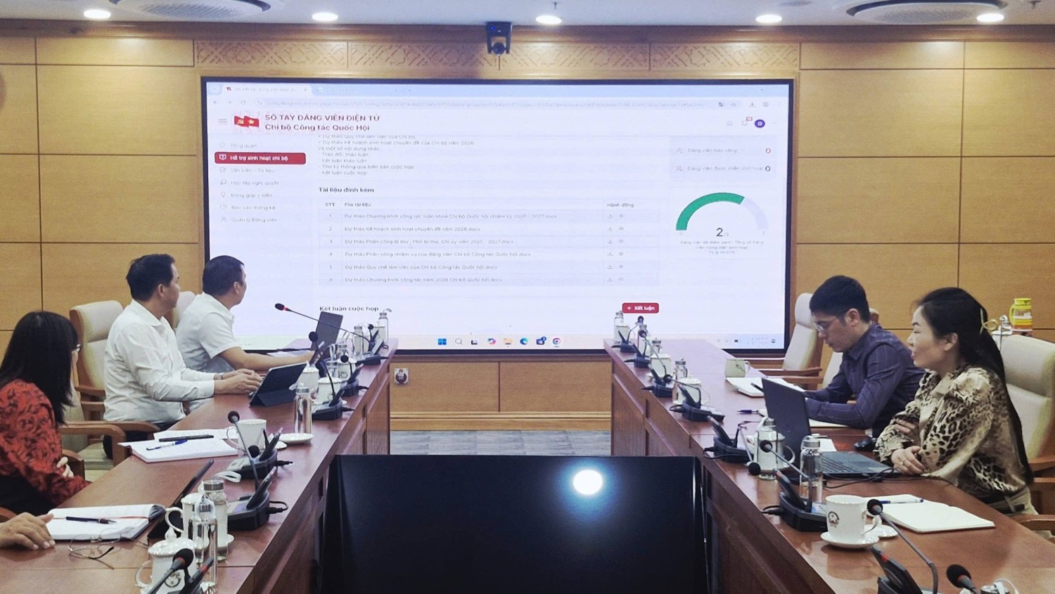 Các đảng viên trong chi bộ Công tác Quốc hội thực hiện các ứng dụng của “sổ tay đảng viên điện tử”